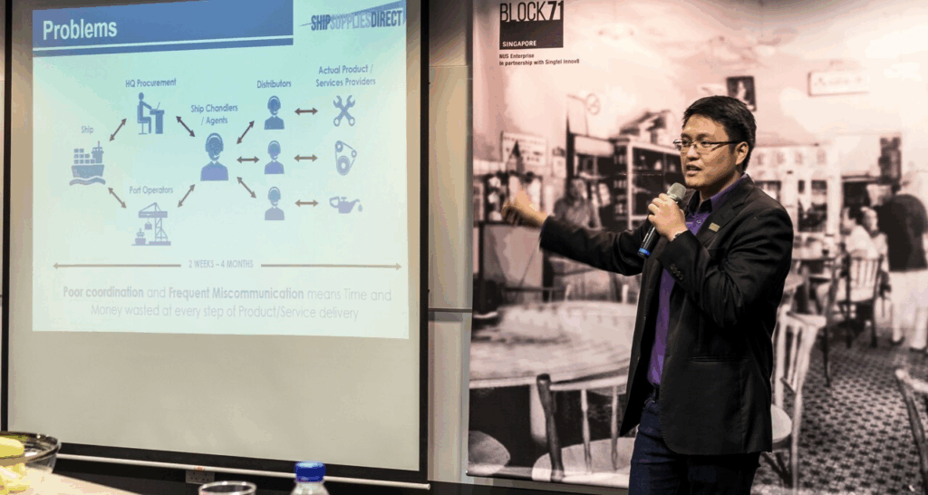 Eric explaining Ship Supplies Direct’s proposition at BLOCK71